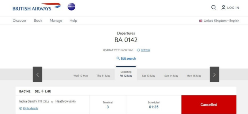 De terugvlucht naar Europa werd vandaag 'cancelled' door de luchtvaartmaatschappij.